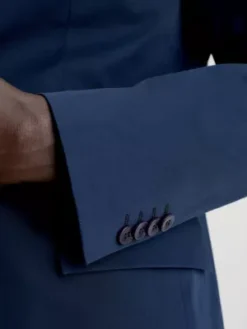 Ce blazer est confectionné de façon responsable et contient 97 % de coton bio.