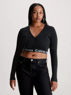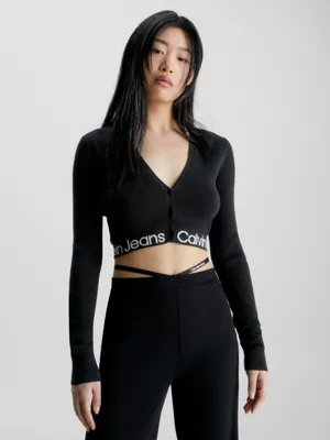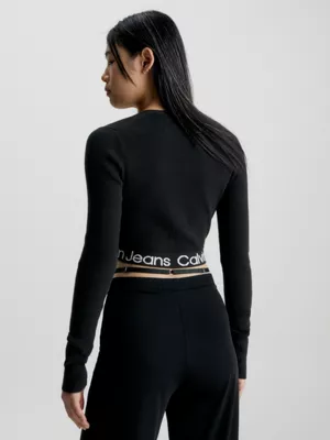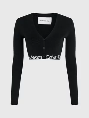 âą Logo Tape Calvin Klein en maille intarsia sur la base