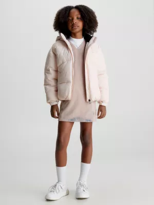 Cette doudoune est confectionnée en polyester recyclé.