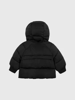 Cette doudoune pour nouveau-né est confectionnée en polyester recyclé.