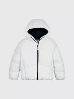 Cette doudoune est confectionnée en polyester recyclé.