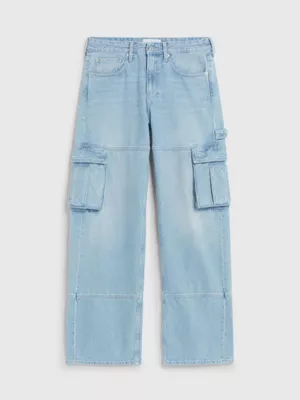 Ce jean est confectionné à 100 % à partir de coton recyclé par retraitement de matériaux en coton existants.
