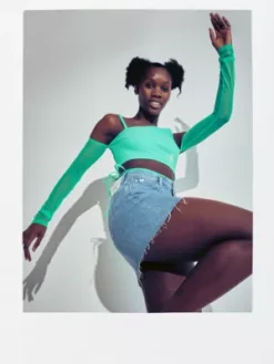 Notre modĂšle mesure 1,76Â m et porte une taille 28.