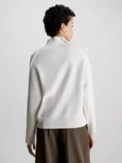 Ce pull est confectionné à 100 % à partir de laine recyclée certifiée, à l’exception des bordures.