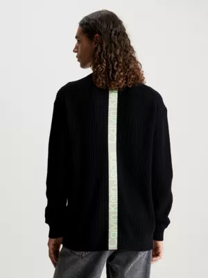 âą Logo Tape Calvin Klein en maille intarsia au milieu du dos