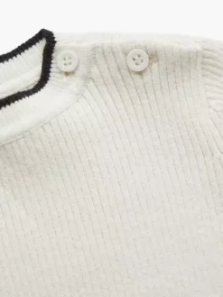 Ce pull pour nouveau-né est entièrement confectionné en coton bio.