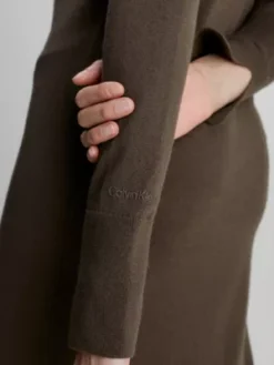 Cette robe est confectionnée à 100 % en laine mérinos certifiée issue de sources responsables, à l’exception des bordures.