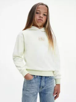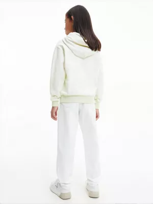 Ce sweat à capuche est confectionné en mélange de coton bio et de polyester recyclé.